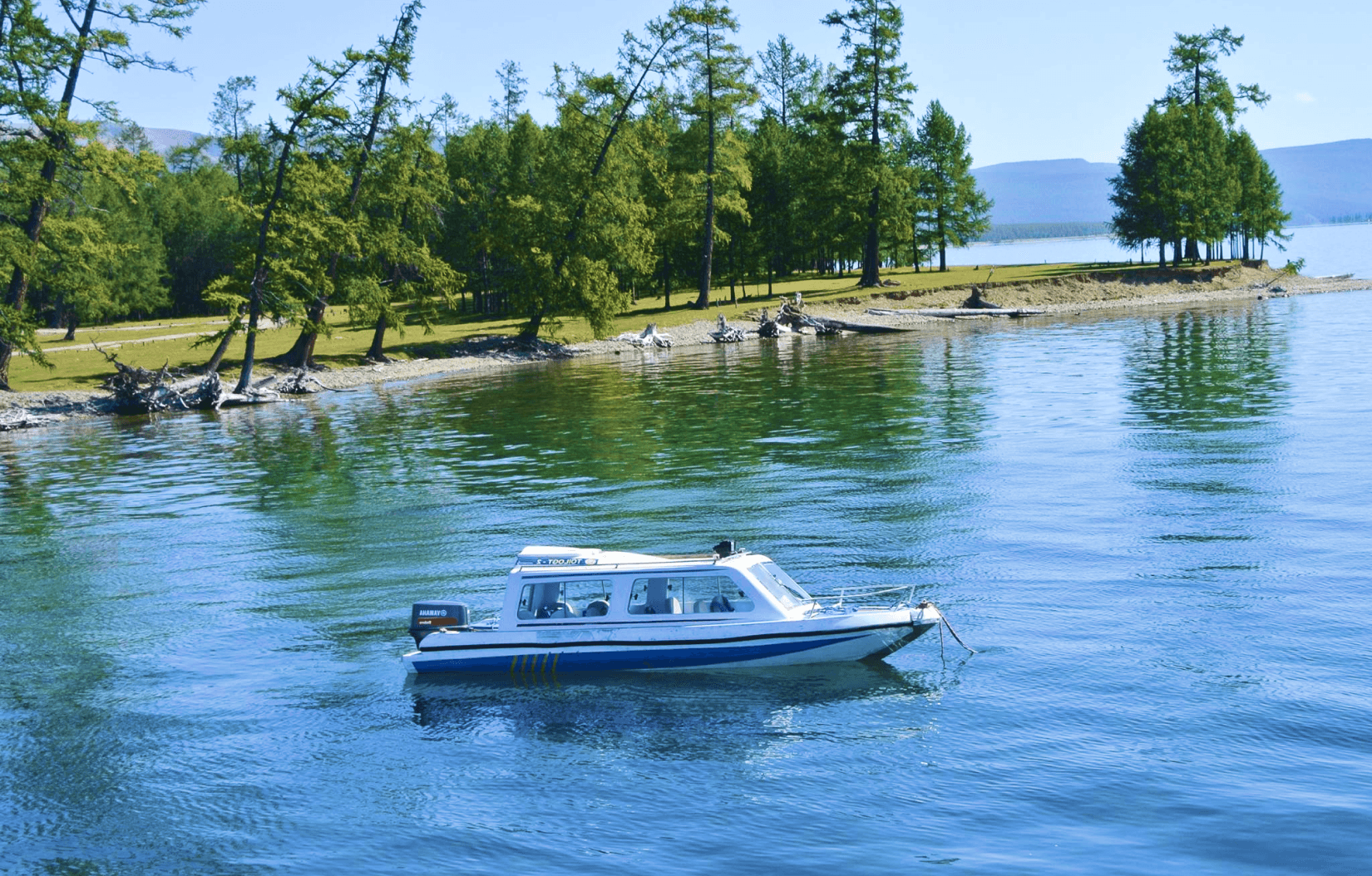 Enjoy motor boating adventures on Hovsgol Lake! Cruise through scenic waters, surrounded by stunning landscapes.